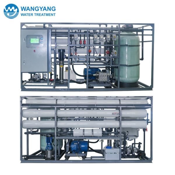 The 72TPD Automatic Double RO System Seawater Desalination Plant WY-FSHB-72-2 adopts the international advanced reverse osmosis technology and is designed by optimizing the system.
