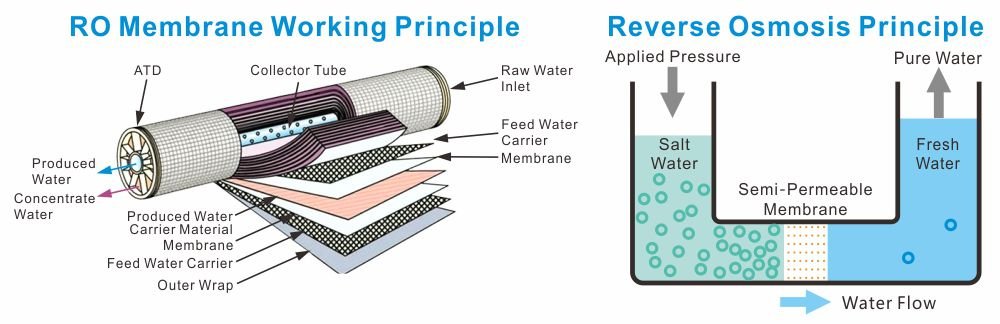 The pore size of reverse osmosis membranes is very small, so they can effectively remove dissolved salts, colloids, microorganisms, organic matter and other substances in water.